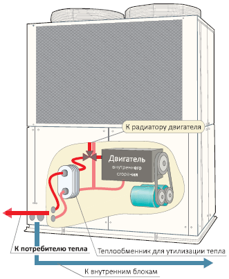 В чем ее суть? В качестве привода компрессора системы GHP служит двигатель внутреннего сгорания, а не электрический двигатель, как в классическом представлении технологии VRF.