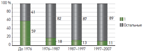 На европейский жилой фонд (в м2) приходится 75% от общего строительного фонда, при этом доля малоэтажных зданий в жилом фонде составляет 64%. На рис. 6–12 дано распределение систем вентиляции в зданиях, построенных в течение определенного временного периода.