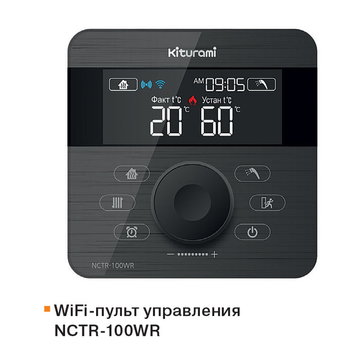 Котлы серии Alpha PLUS могут быть дополнены внешним пультом управления NCTR-100WR. Установив данный пульт управления с подключением к сети Internet через Wi-Fi, потребитель может управлять котлом дистанционно через приложение в смартфоне практически из любой точки мира.