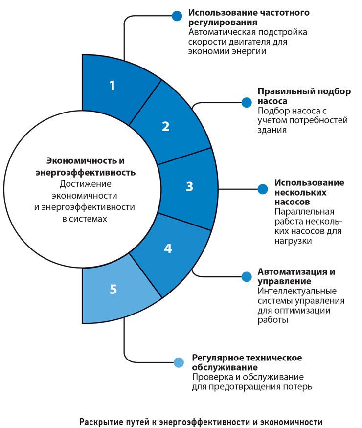 Экономичность и энергоэффективность достигаются за счет использования систем с регулируемым приводом, правильного подбора оборудования, оптимизации режимов работы и регулярного технического обслуживания.