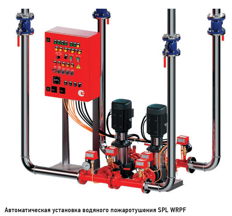 Для нужд водяного пожаротушения компания «Водокомфорт» производит автоматические установки водяного пожаротушения SPL WRPF. Данные установки изготовляются в соответствии с СП 10, СП 484, СП 485 и помимо обязательного пожарного сертификата на пожарный прибор управления имеют добровольный пожарный сертификат на всю установку в целом. Установки предназначены для дренчерных систем пожаротушения объектов с повышенной пожаро- и взрывоопасностью, например складов или объектов энергетики. Также их применяют для создания водяных завес, чтобы изолировать часть здания, где произошло возгорание.