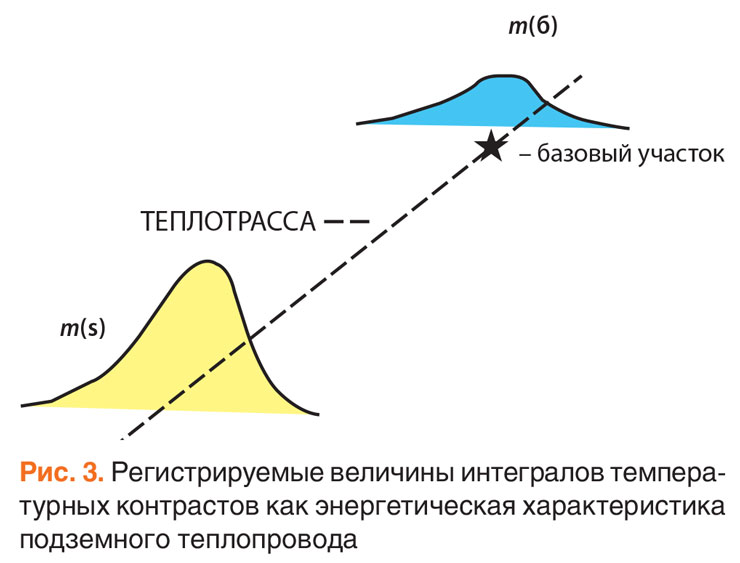 Следовательно, отношение интегралов регистрируемых температурных контрастов m(s)/m(б) может рассматриваться как устойчивая энергетическая характеристика подземного теплопровода и сравниваться для разных сезонов или этапов съемки при оценке динамики развития температурных аномалий. Важно, чтобы температурные контрасты m(s) и m(б) были зарегистрированы при одинаковых метеоусловиях на однотипной земной поверхности.