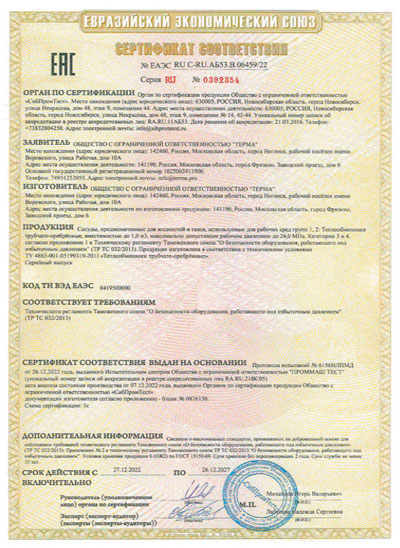С инженерной и юридической точки зрения теплообменник для транскритического цикла CO2 является сосудом, работающим под избыточным давлением. Его производство в России должно соответствовать Техническому регламенту ТР ТС 032/2013. Наличие у «Терма» сертификата соответствия этому регламенту – не просто формальность, а документальное подтверждение отлаженных процессов: применение аттестованных технологий сварки и пайки, обязательные расчеты на прочность и систему контроля качества на всех этапах производства.