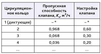 В данном примере примем, что балансировочные клапаны установлены на каждом циркуляционном кольце.