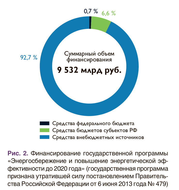 При этом почему-то приводятся сведения только о плановых объемах и источниках финансирования этих утративших силу нормативных документов (рис. 2), которые не имеют никакого отношения к перспективным направлениям и конкретным мерам государственной политики в области энергосбережения и повышения энергоэффективности.