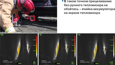 Если видеокамера помогает лишь обнаружить полыхающий автомобиль, то ручной тепловизор используется для точного «наведения» пожарного ствола и является абсолютно незаменимым средством.
