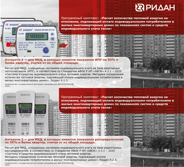 С целью обеспечения удобства ведения расчетов за отопление исполнителем коммунальных услуг в МКД, оснащенных системами и средствами индивидуального учета, на основе формул и алгоритмов методики АВОК был разработан программный комплекс «Расчет количества тепловой энергии на отопление индивидуальными потребителями в жилых многоквартирных домах по показаниям средств и систем индивидуального учета теплоты».