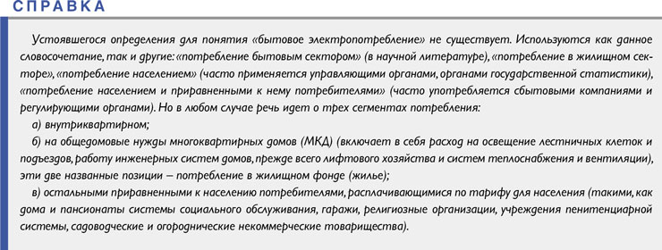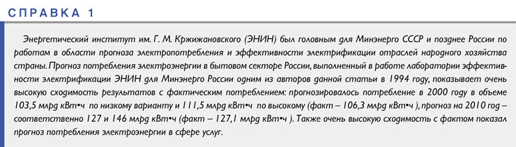 Ранее, при плановом хозяйстве и вплоть до середины 90-х годов прошлого века, именно с учетом такой структуры и строились прогнозы потребления электроэнергии в бытовом секторе, которые использовало в своей практике Минэнерго СССР и России.