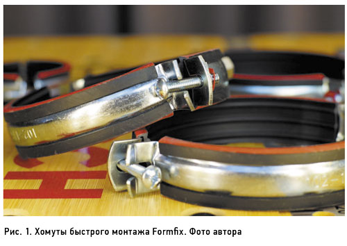 В России популярны турецкие хомуты Formfix, рис. 1 (их эксклюзивно поставляет компания «Мир Хомутов» в Россию и СНГ). Ранее мы уже рассказывали об испытаниях, в которых хомут тяжелой нагрузки этой марки выдержал нагрузку в 1926 кг. Есть четыре вида Formfix: хомуты тяжелой нагрузки (у них усиленные болты, гайка обварена по кругу), хомуты быстрого монтажа со звукоизоляционной прокладкой и комбинированной гайкой для шпилек М8 и М10, хомуты быстрого монтажа FGRS, стандартные хомуты с пластиковыми шайбами для предотвращения выпадения болтов при монтаже.