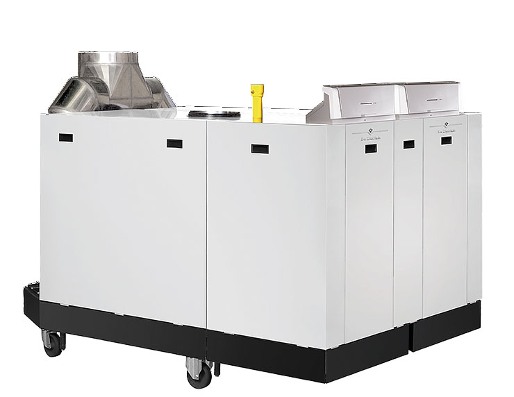 Уникальной особенностью является возможность поставки левостороннего и правостороннего котла С 340 для удобства размещения в очень компактных или узких помещениях, а также каскадной установки С 640, совмещенной в один общий дымоход. При этом вне зависимости от количества и мощности котлов их можно объединить в общую систему дымоудаления без специальных дополнительных элементов. Обратный клапан дымовых газов, лючки для ревизии, датчики уходящих газов и остальные необходимые элементы системы дымоудаления уже встроены в котлы.