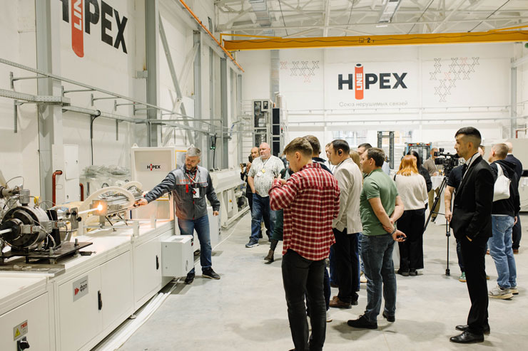 Выбранный заводом HIPEX метод производства предполагает гомогенизацию компонентов рецептуры в расплаве экструдера, где сначала формируется изделие с невысокой степенью сшивки (не более 20%). Затем оно в виде трубы проходит через источник ИК-излучения, после чего сшивка заготовки возрастает до 70-80%.