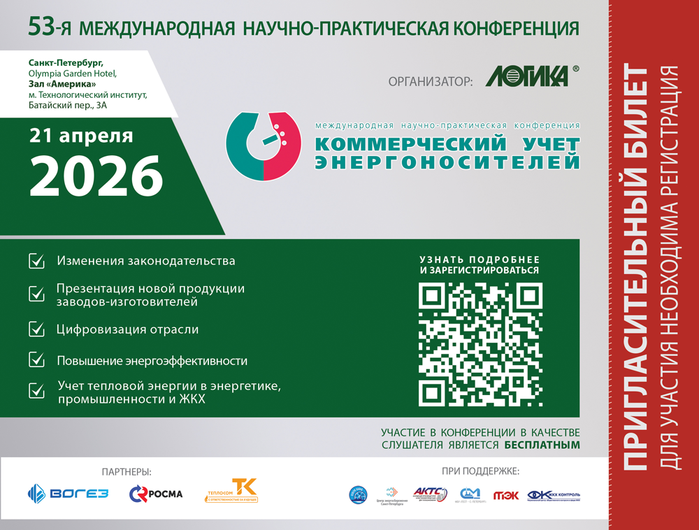 21 апреля 2026 года в Санкт-Петербурге состоится 53-я международная научно-практическая конференция «Коммерческий учет энергоносителей». Мероприятие служит площадкой для конструктивного диалога и обмена опытом между ключевыми субъектами отрасли энергоэффективности и энергосбережения.